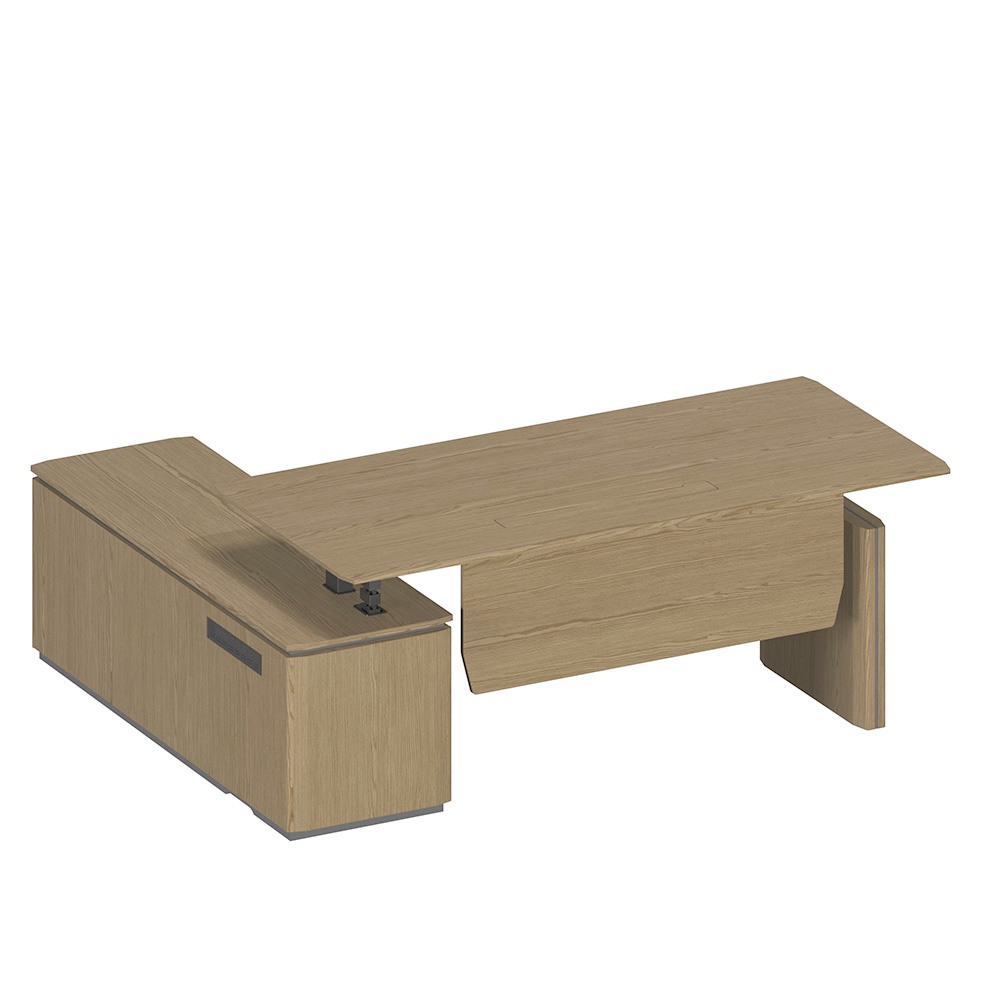 Стол руководителя на электроприводе на опорной тумбе правый 214.8x180.4x76 дуб грейдж
