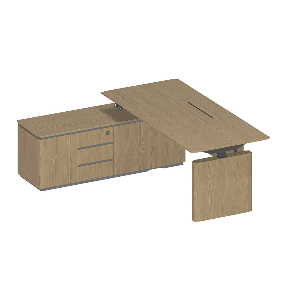 Стол руководителя на электроприводе на опорной тумбе левый 214.8x180.4x76 дуб грейдж