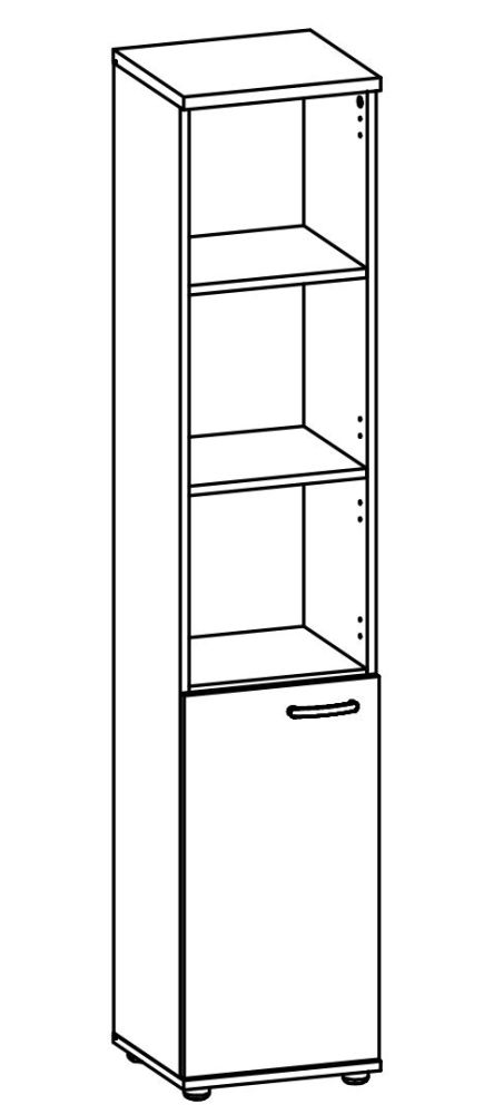 Офисный шкаф высокий для документов узкий полузакрытый. Три открытые ниши.