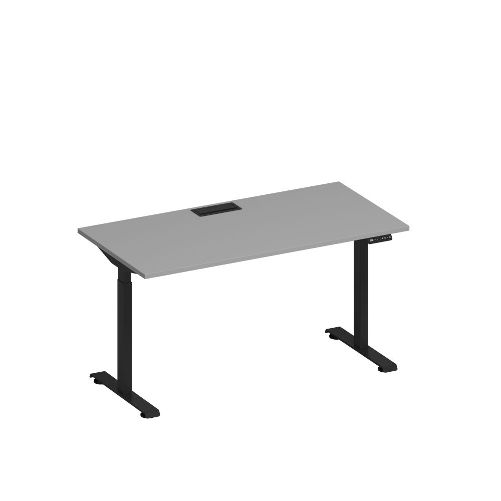 Стол письменный на электроприводе с заглушкой 160x80x72 серый / черный гладкий